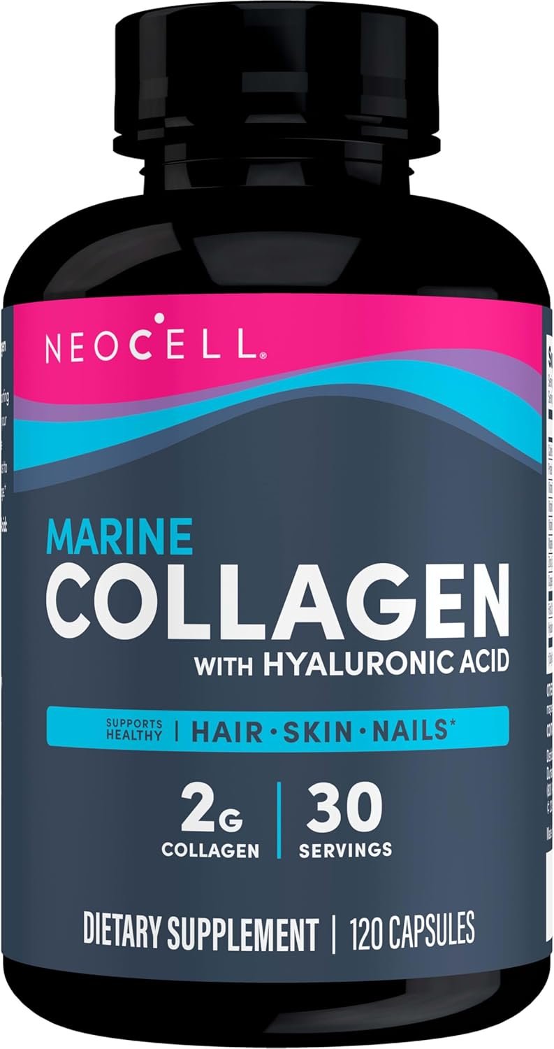 NeoCell Marine Collagen Peptides (120 capsules) – marine-sourced collagen with hyaluronic acid, vitamin C, and minerals to support radiant skin, hair, nails, and joint health.